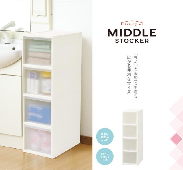 リセ ミドルストッカー 幅26cm 引出し4段 M4 日本製 JEJ ジェイイージェイ すき間収納 隙間 収納ボックス 小棚 6段 キャスターつき 収納ケース プラスチック収納 キッチン 洗面所 脱衣所(代引不可)【送料無料】