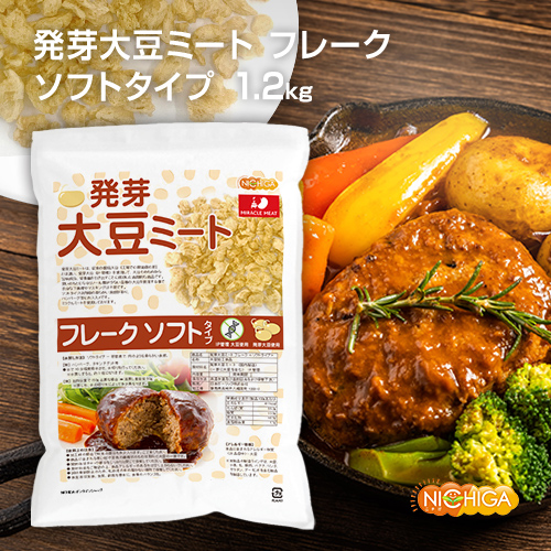 発芽大豆ミート フレーク <ソフトタイプ> 1.2kg 国内製造 ミラクルミート 発芽大豆IP管理品 発芽大豆旨味成分と栄養価UP 大豆肉 NICHIGA(ニチガ) TK1