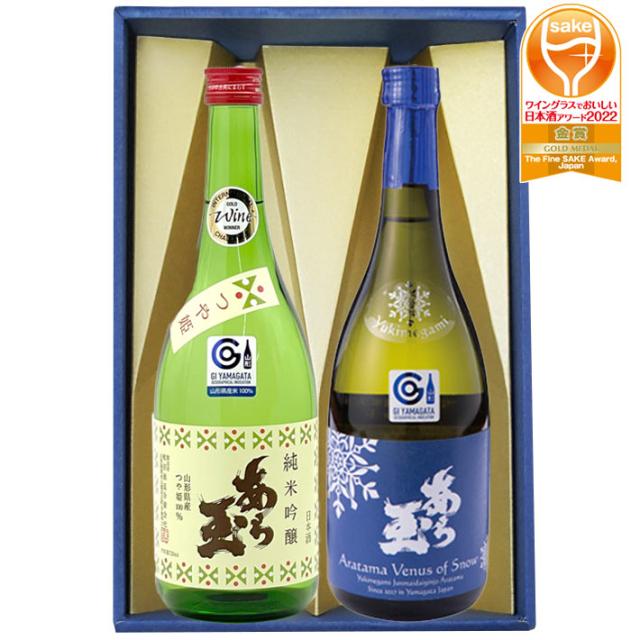 日本酒 飲み比べ セット ワイングラスでおいしい日本酒アワード 2022 金賞受賞酒 あら玉 純米大吟醸雪女神 ×純米吟醸つや姫 720ml 2本 セット 山形県 河北町 和田酒造 お中元 プレゼント