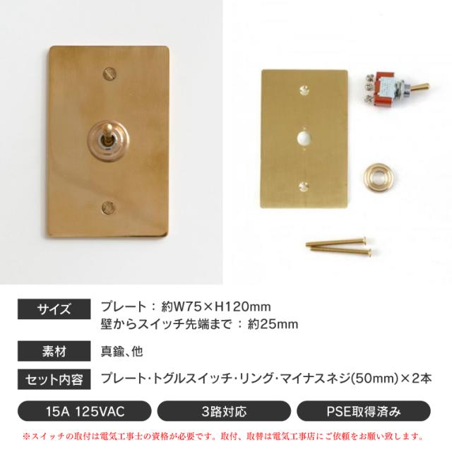 真鍮プレートスイッチ 真鍮 1スイッチ ゴールド 3路対応 トグルスイッチ スイッチプレート シングルスイッチ ブラス アンティーク レトロ おしゃれ 照明スイッチ 壁スイッチ 日本製 リノベーション リホーム DIY 模様替え 新築 アメリカンスイッチ 高級感 agesugi_sis