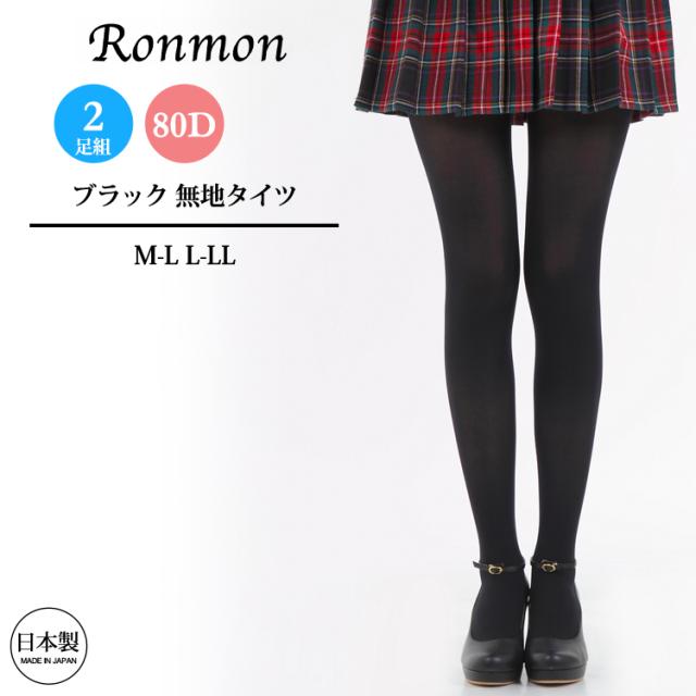 80デニール 無地タイツ ブラック2足セット【タイツ 黒タイツ レッグウェア レッグウエア レディース 無地 80デニール シンプル 黒 ブラック 日本製】