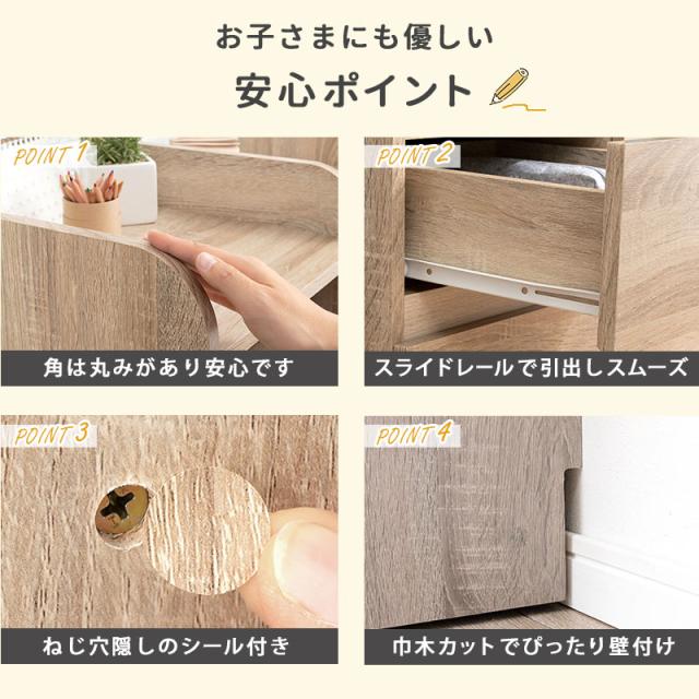 【4】ハンカチ、マスク、ティッシュ、文房具、筆記用具、筆箱、鍵盤ハーモニカなど小物を収納できる大小2つの引き出し。