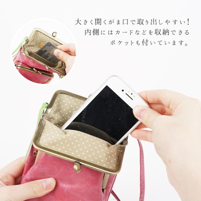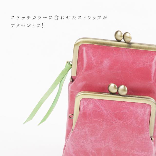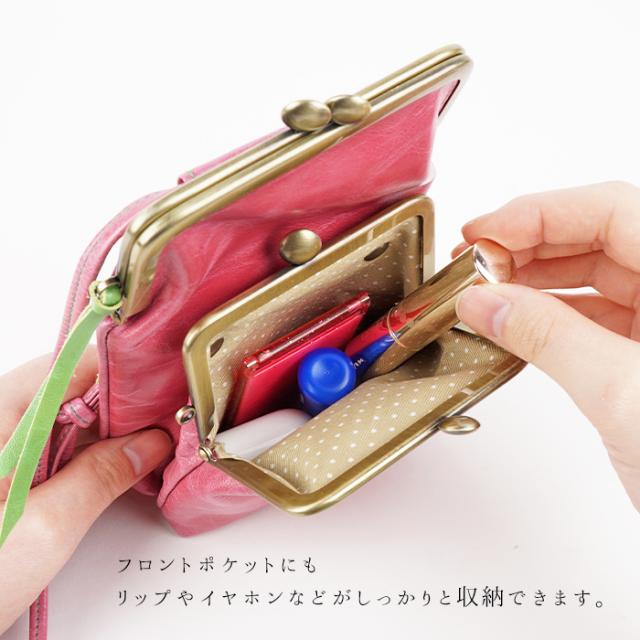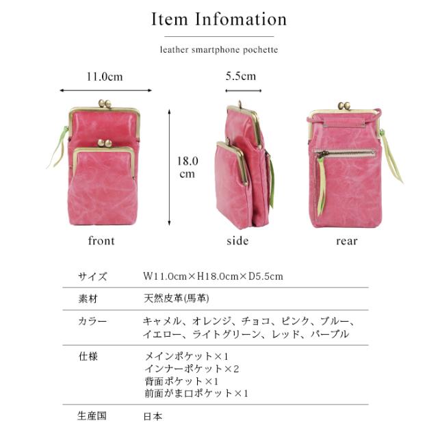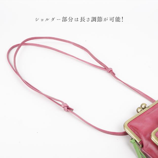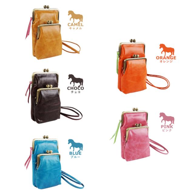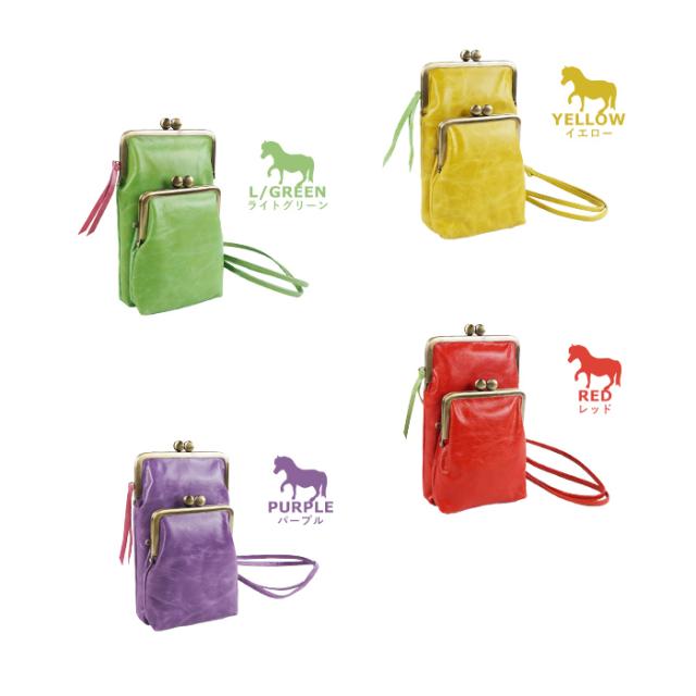 スマホポシェット スマホポーチ ショルダーポーチ レディース ダブルがま口 軽量 日本製 スマホ 馬革 本革 撥水加工 かわいい カラフル キャンディ paccapacca
