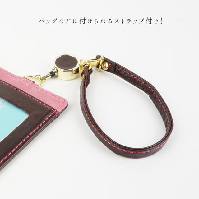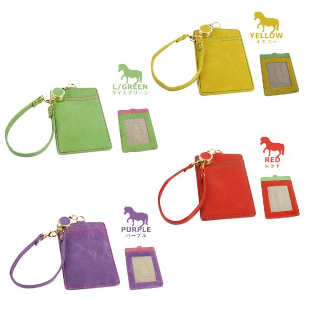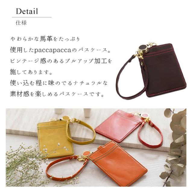 パスケース リール付きパスケース レディース 本革 日本製 馬革 両面 定期入れ 軽量 軽い pacca pacca キャンディ