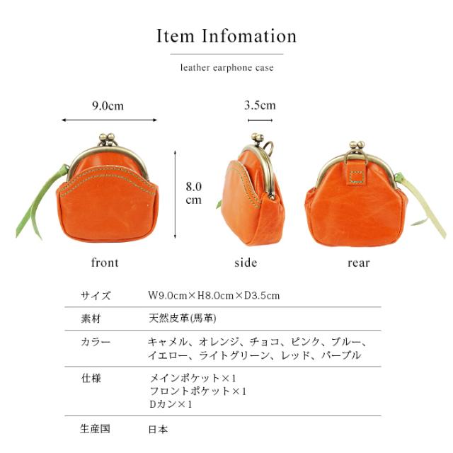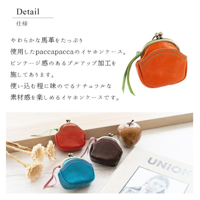 がま口イヤホンケース イヤホンケース ワイヤレスイヤホン コードレスイヤホン レディース 本革 日本製 馬革 両面 定期入れ 軽量 軽い pacca pacca キャンディ