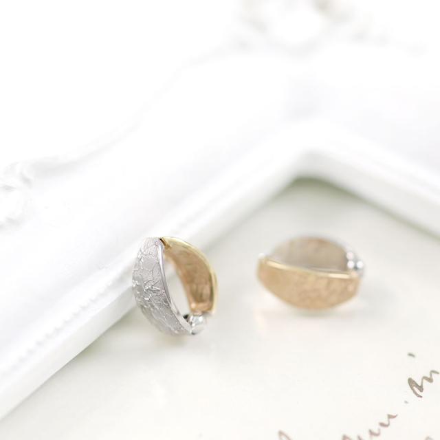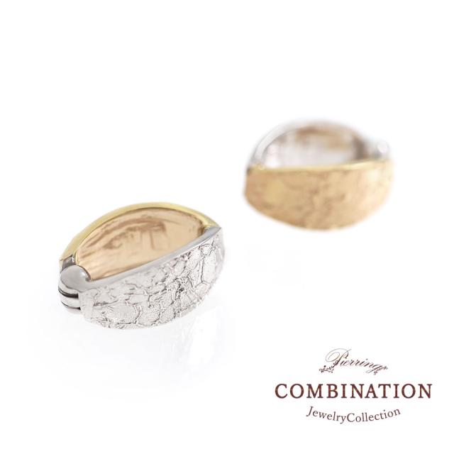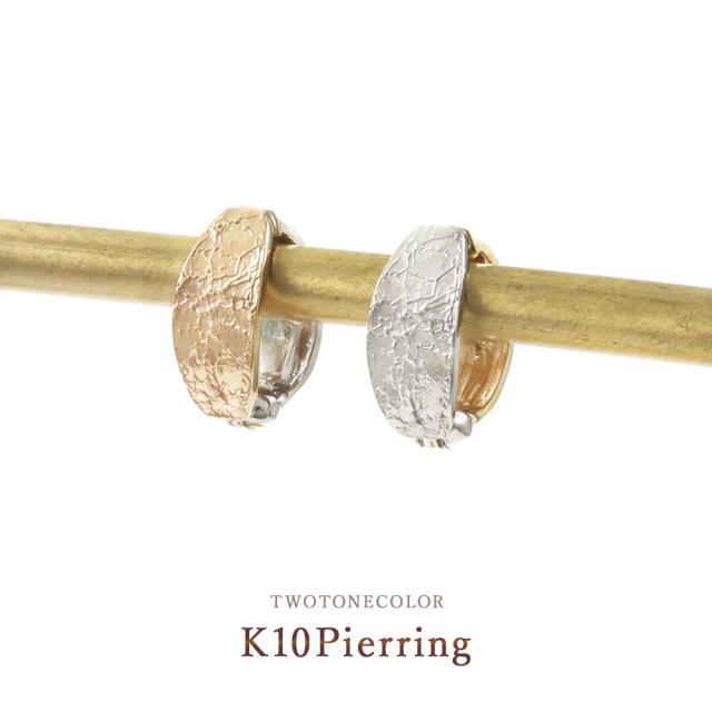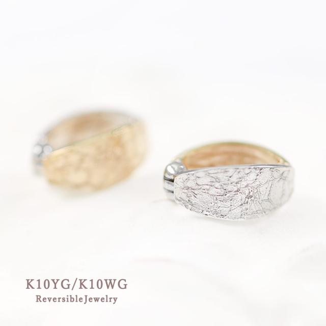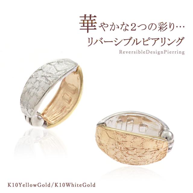 ピアリング 女性 レディース イヤリング 正規品 シンプル 10K イエローゴールド 10金 ホワイトゴールド K10 コンビジュエリー 2色 おしゃれ リバーシブル バイカラー レディース 正規品 本物 プレゼント 記念日 クリップ 地金 模様 ホワイトデー お返し