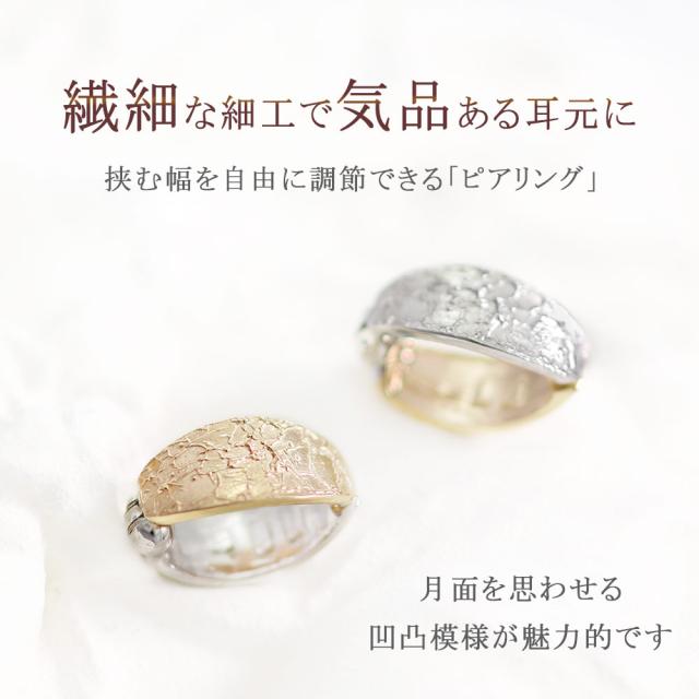 | スタッフより | 10金イエローゴールド×10金ホワイトゴールドのフープイヤリング(ピアリング)です。 フープには月面のような凹凸の細工が施され、シンプルな中にもこだわりが感じられます。 リバーシブルで使えるので、シーンやコーディネートに合わせてお楽しみいただけます。 オシャレの好きな彼女や妻・奥様、大切な人への記念日のお祝いや誕生日のプレゼントにもオススメです。 ・皆様の笑顔があふれるよう「温かみのあるオレンジ色」のリボンで 綺麗にラッピングいたします。 ・「特別な贈り物」になりますよう真心を込め丁寧にご準備させて頂きます。 (ご不明な点はお気軽にお問合せ下さい。0120-755-888(平日9時〜18時)) |