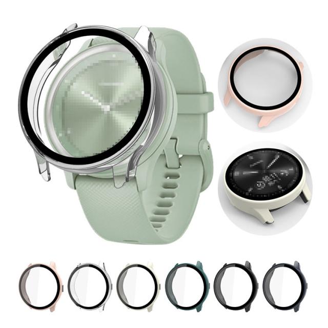 Garmin vivomove Sport ケース カバー 強化ガラス (ガラスフィルム) 付き 全面保護 液晶保護ケース 単色/クリア フィルム一体 ハードケース ガーミン