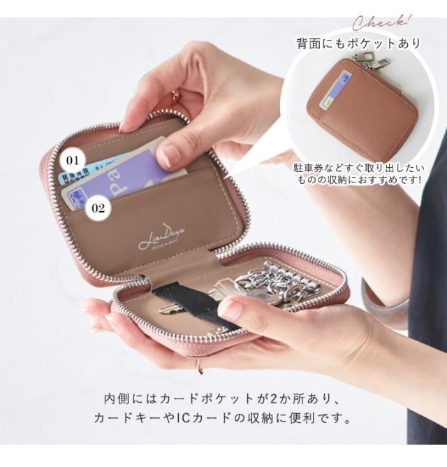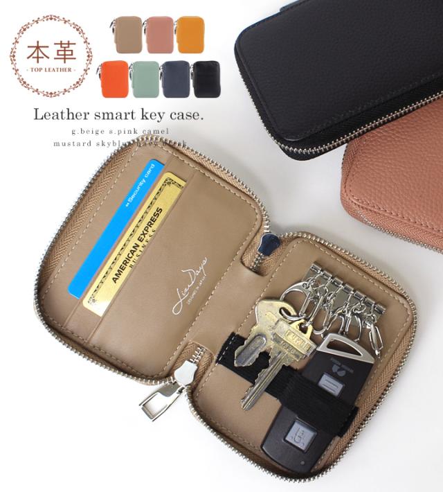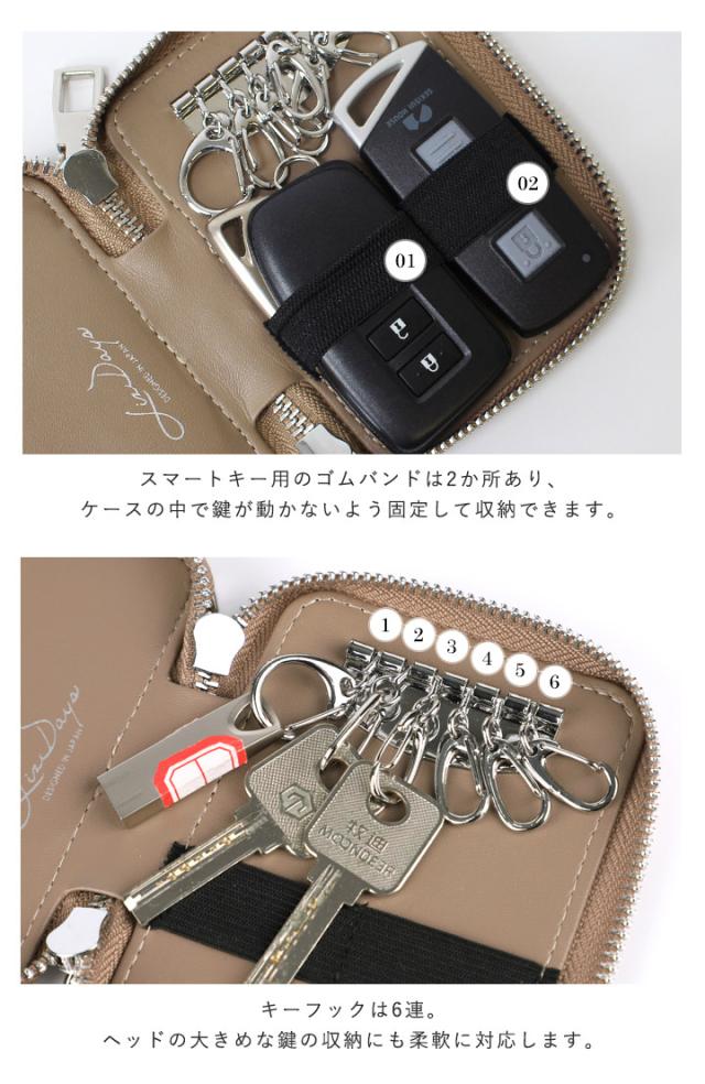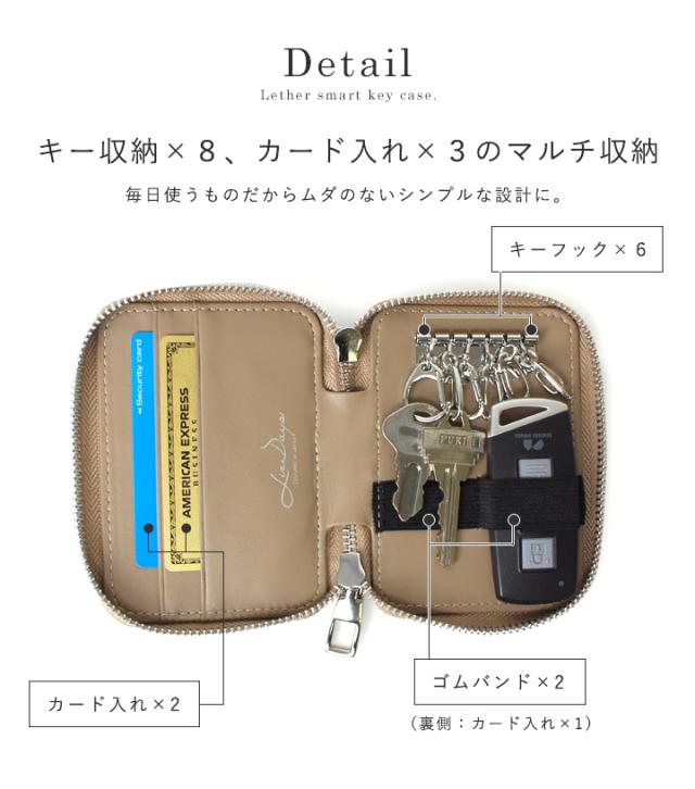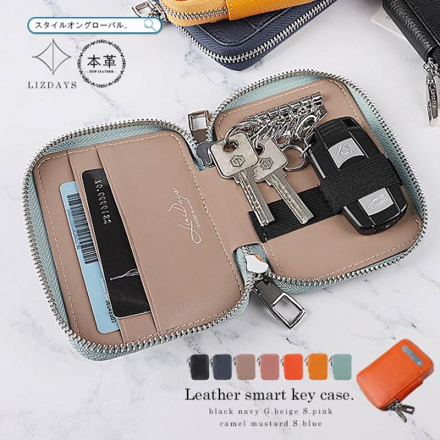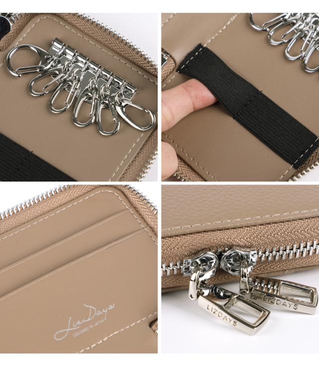 スマートキーケース レディース 本革 キーケース スマートキー2個 ケース カード入れ ICカード シンプル マルチケース 牛革 6連 キーフック スマートキー 2個収納 ゴムバンド おしゃれ LIZDAYS リズデイズ 便利 genuine【lz-68103】