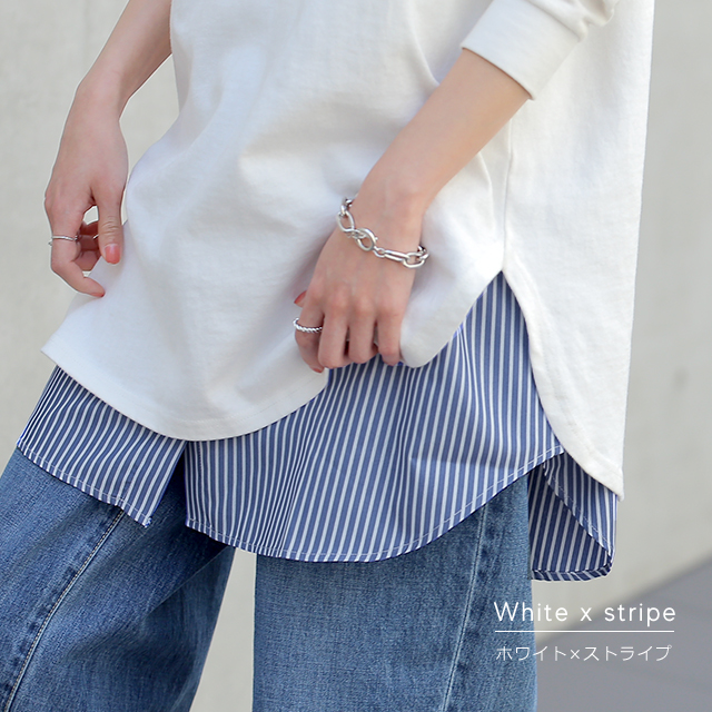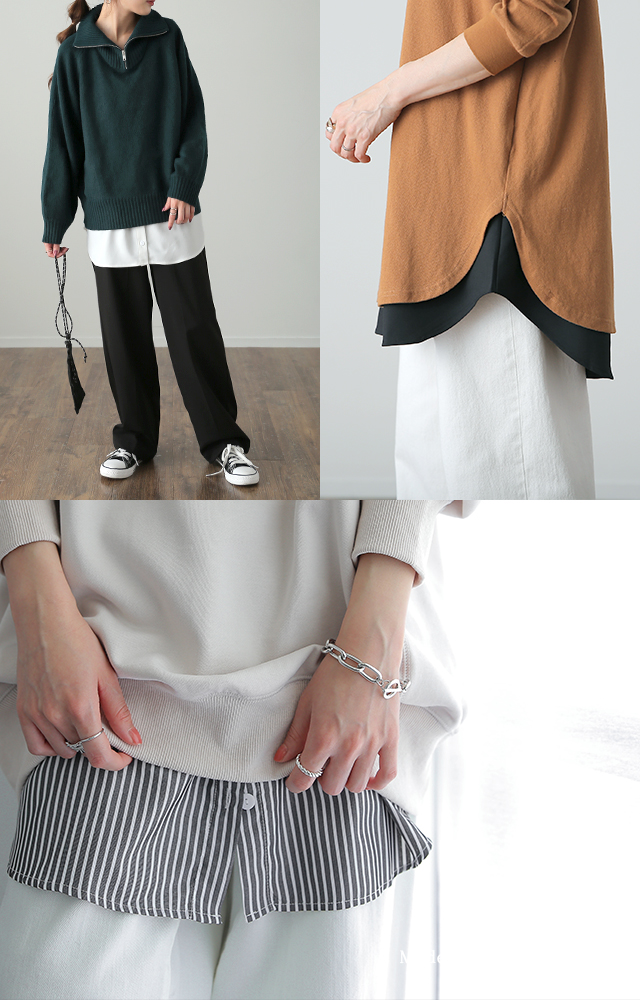 どんなコーデにも合わせることが出来る重ね着風トップスです。