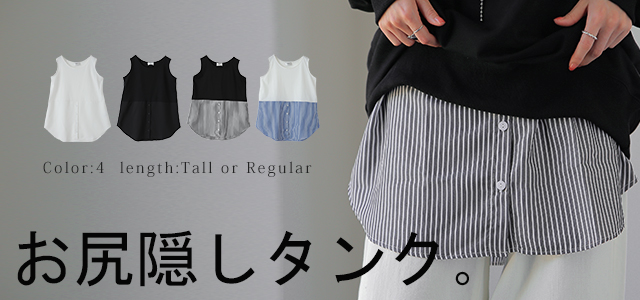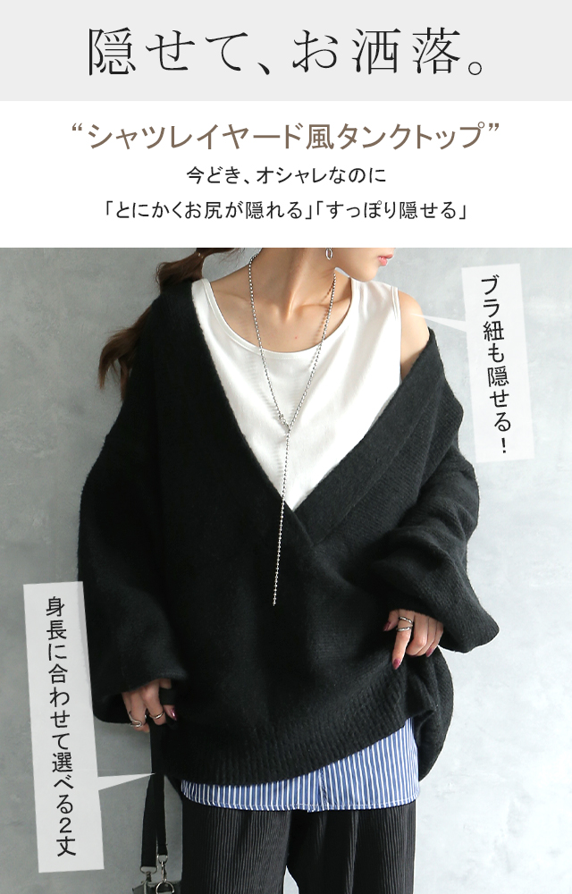 痩せました!? お尻隠し レイヤード タンク メール便 一部12月下旬入荷 送料無料 シャツ トップス ストライプ ストライプシャツ ブラウス タンクトップ 黒 つけ裾 付け裾 お尻が隠れる ロング レイヤードタンクトップ 体型カバー インナー 大きいサイズ HUG.U 秋新作
