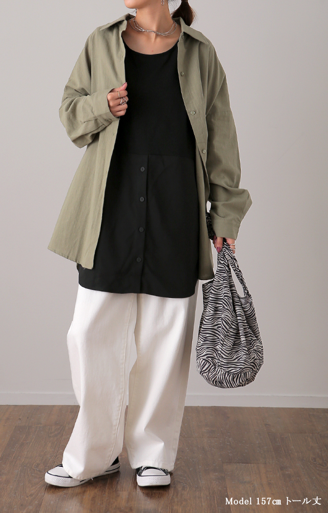 心地よい着用感のタンクトップの裾にブラウスがドッキング。