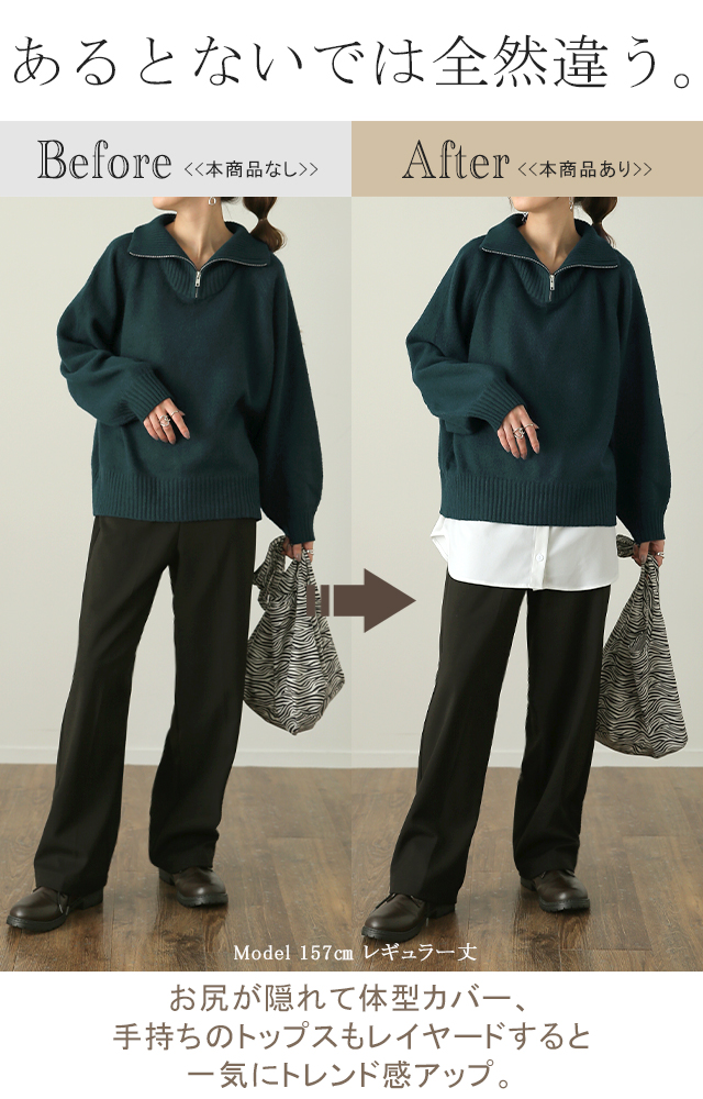 インナーがちゃんと見える丈感なので裾レイヤードスタイルを楽しめます。