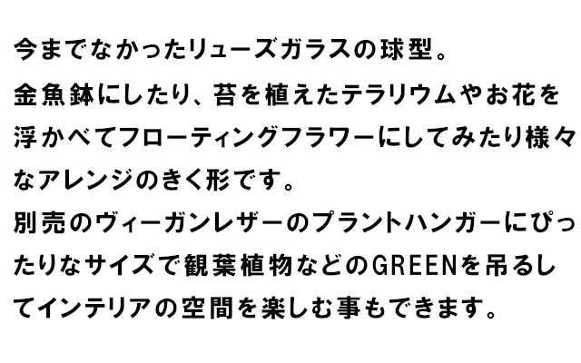 金魚鉢にしたり、苔を植えたテラリウムやお花を浮かべてフローティングフラワーにしてみたり様々なアレンジのきく形です。