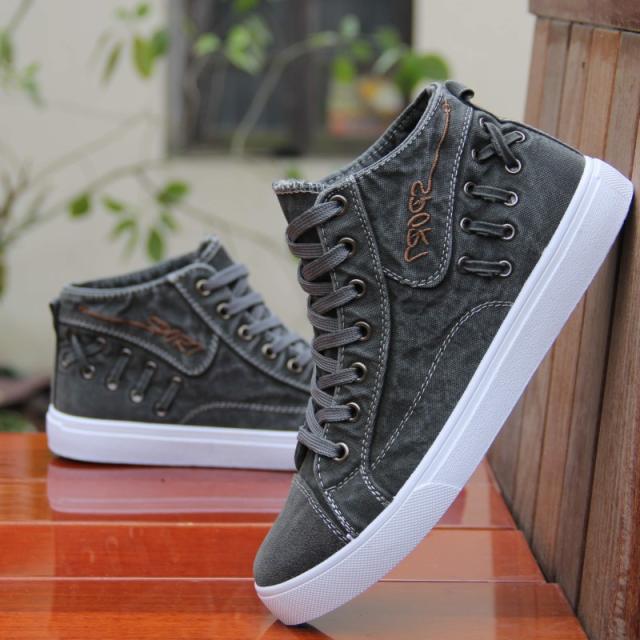 スニーカー メンズ キャンバス ミドルカット シューズ レースアップ デニム デッキ カジュアル 大人 可愛い きれいめ アクセント ロゴ 春夏 新作 2022