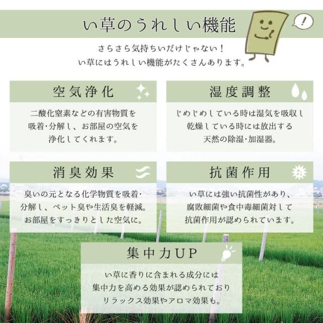 表面:国産い草100% 裏面:不織布(滑りにくい加工) 縁:ポリエステル100%
