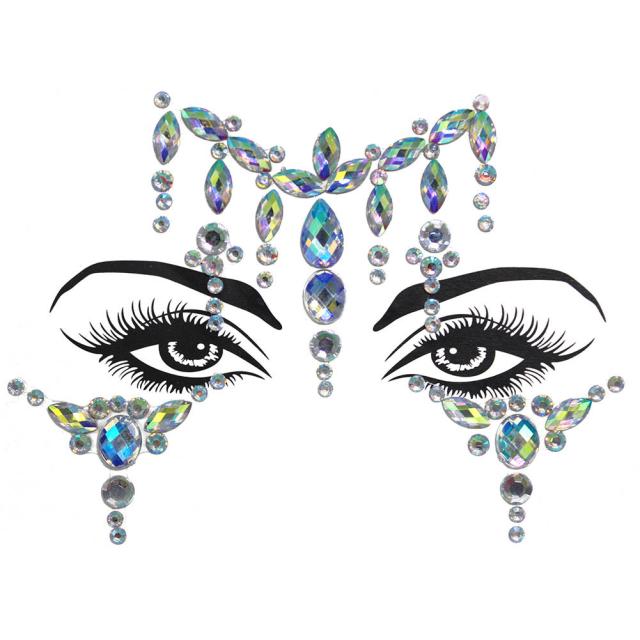 フェイス用(目元・アイブロー用) ジェムボディステッカー 1シート 貼る シール アクセサリー クリスタル ビジュー アクリル レディース メンズ ダンサー 男子 女子 セクシー 体 腕 顔 ラインストーン 眉 キラキラ ハロウィーン 社交ダンス 涙 虹色 レインボー シャンデリア