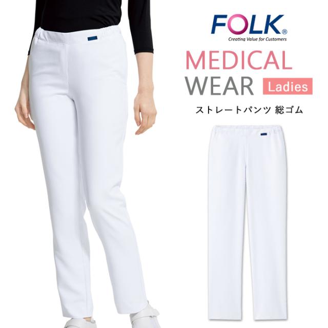 スクラブ パンツ 医療 看護師 医療用 FOLK FLab. ユニフォーム 女性 医師 総ゴム レディス ストレートパンツ【送料無料】ナース 白衣 医療用 介護師 病院 クリニック 薬局 歯科 獣医 仕事着 制服 agesugi_snk