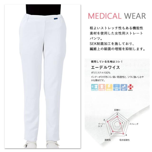 程よいストレッチ性もある機能素材を使用した、女性用ストレートパンツ。