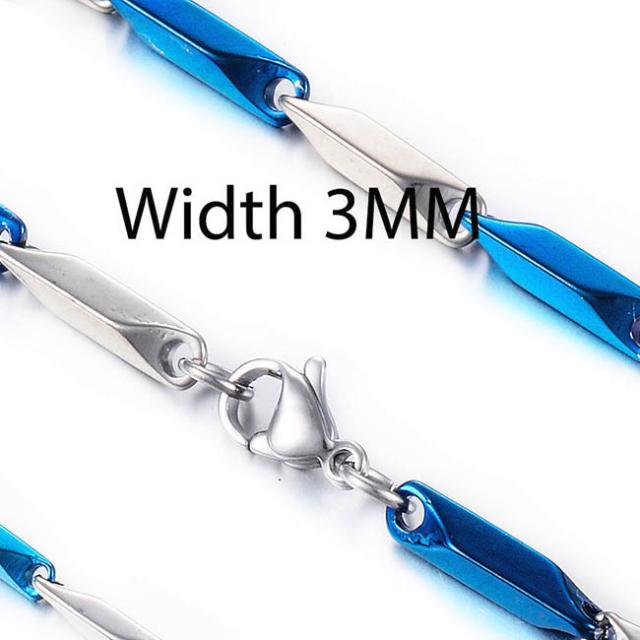 3ミリの太さのブルーとシルバーカラーの2色配色の墓石をイメージしたパーツをつなげた人気のネックレスチェーン。銀色シルバーと青色ブルーの綺麗めコーデをアピールするネックレス。