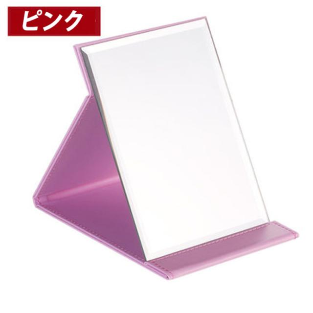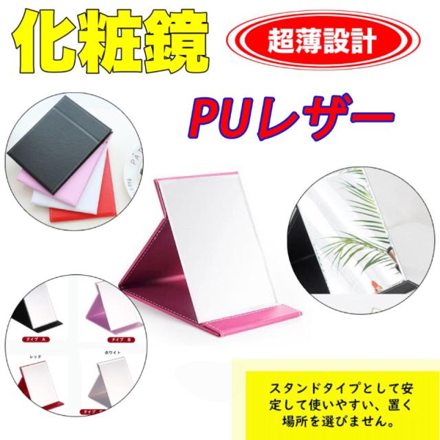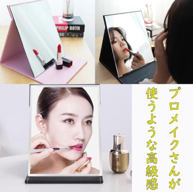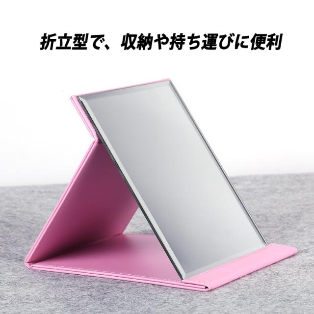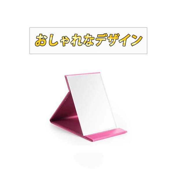 当日発送 鏡 卓上 鏡 化粧鏡 折りたたみミラー 収納便利 調整自由 PUレザー 軽量コンパクト 三段階角度調整可能 超薄 持ち込み便利