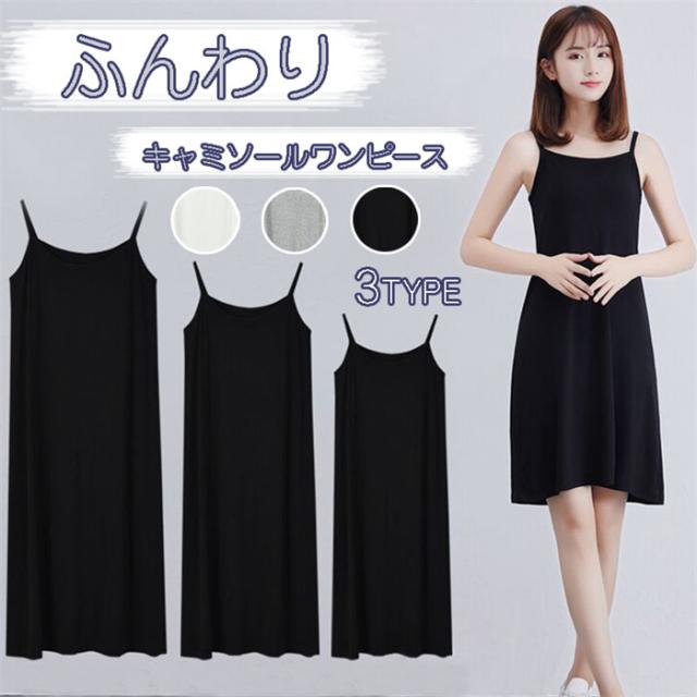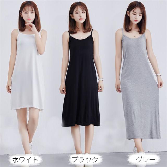 ワンピース レディース インナーワンピース ノースリーブワンピース 3丈さ選べる キャミワンピ 無地 ロング丈 ペチコート インナー 送料無料 キャミソール 吊りスカート シンプル 美シルエット ロングワンピース 大人かわいい