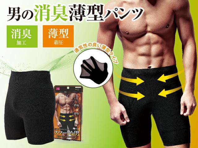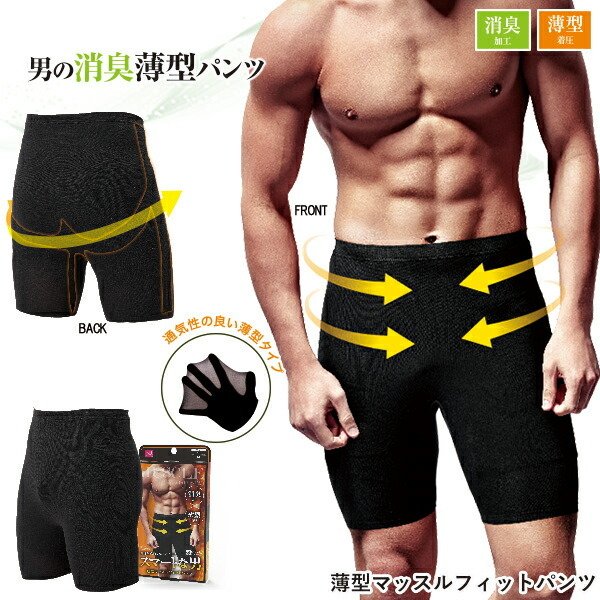 すっきり爽快!!消臭加工繊維使用、薄型スパッツ。消臭加工で気になるニオイもケア!汗の気になる時期にも気持ちよくサラッとスマートに着こなせるインナーです。ピッタリフィットする薄型タイプ!加圧シェイプで引き締め!配置された着圧ラインが男らしいシルエットへとサポートします。