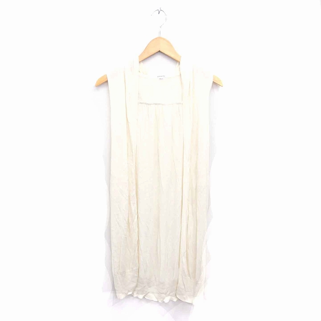 【中古】エンスウィート レナウン カーディガン ニット フード トッパー ロング 薄手 ノースリーブ M ライトベージュ