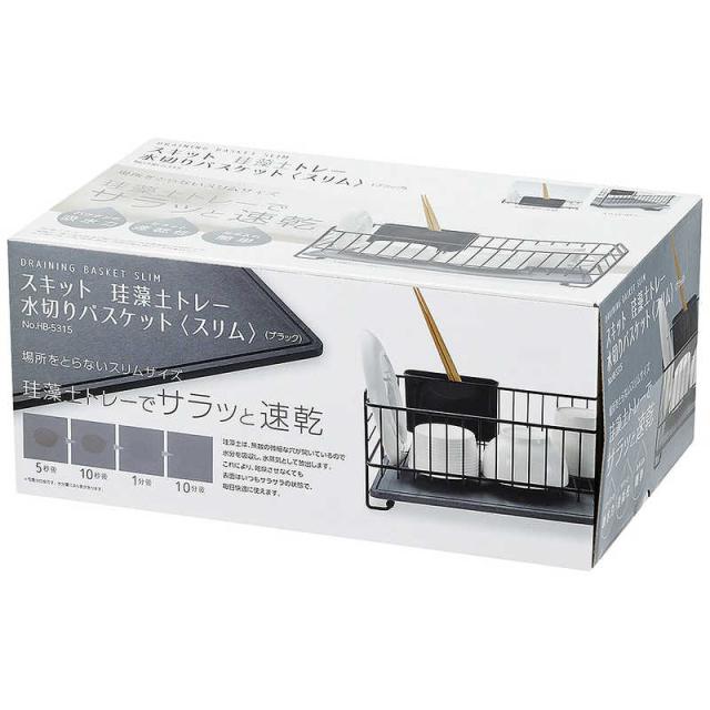 パール金属 スキット 珪藻土トレー水切りバスケットスリム(ブラック) HB-5315
