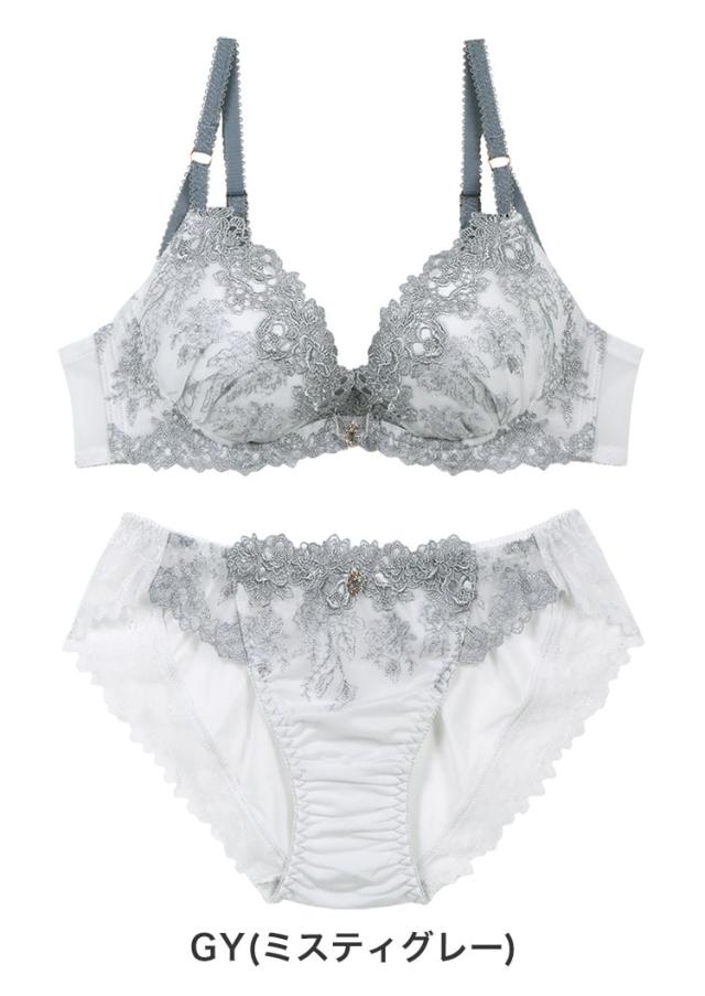 ハンギングバスケットをイメージしたインケミレースを主役に、肌に柄が浮かび上がる豪華で上品なデザイン。土台にはおそろいでデザインされたチュールレースをあしらいました。全体に刺繍が施されているためサイズアップしても寂しく見えません。