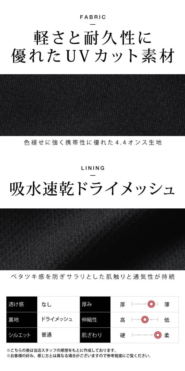 ・表地には、日焼けからお肌を守る「UVカット」機能