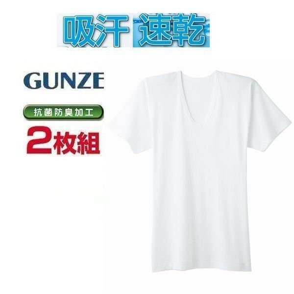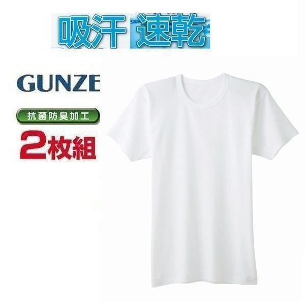 2枚組 グンゼ 紳士 肌着 半袖丸首 シャツ 吸汗速乾 紳士 メンズ インナー 肌着 下着 綿混 抗菌防臭加工 2414