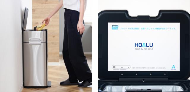 HOALUのフタ裏に専用の消臭・抗菌・抗ウィルスシートを貼ることで、ゴミ箱内のニオイを軽減できます。