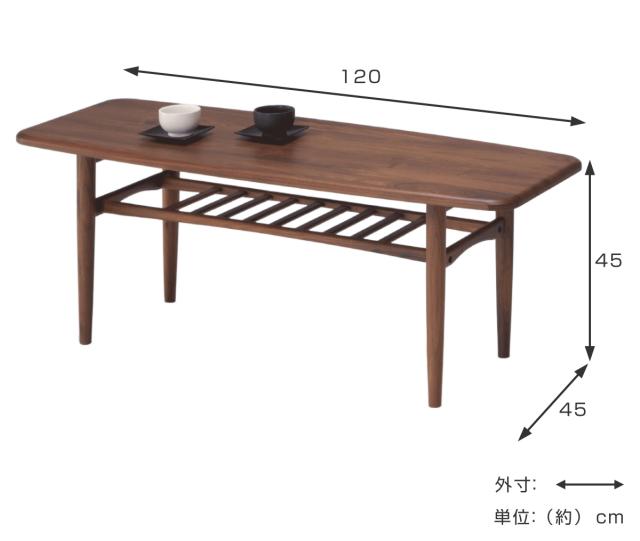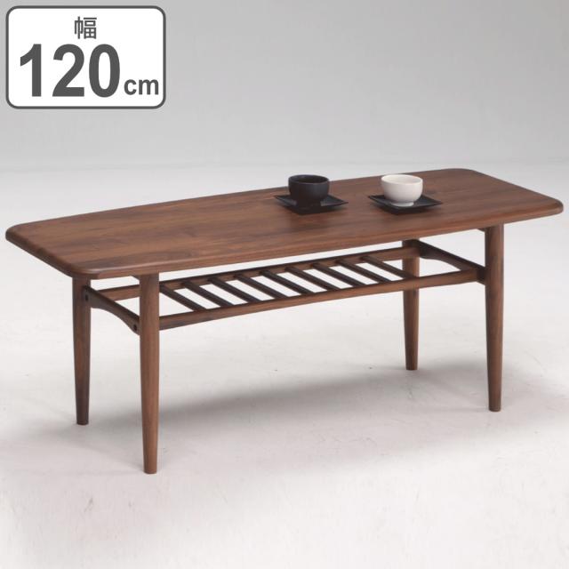 センターテーブル 幅120cm 木製 ラック 天然木 スクエア ( 開梱設置 無垢材 ウォールナット テーブル ローテーブル リビングテーブル 長方形 四角い おしゃれ 天板下収納 棚付き シンプル モダン 北欧 )