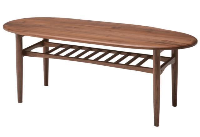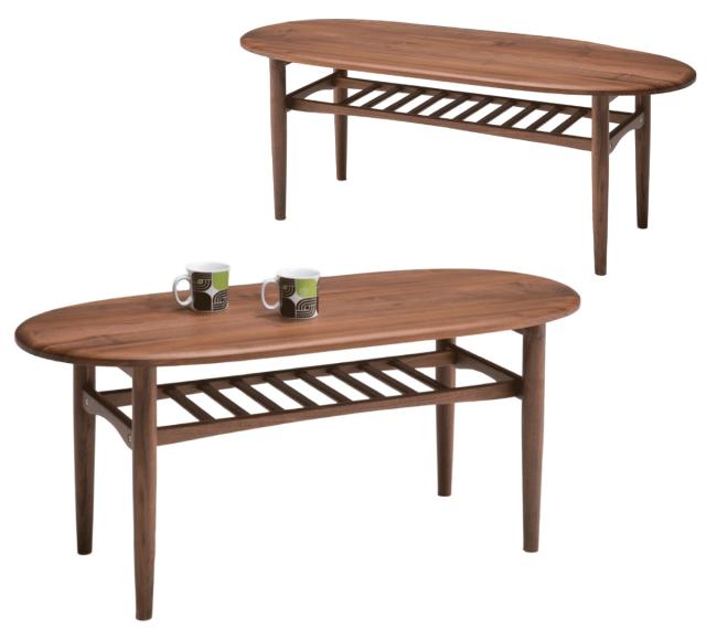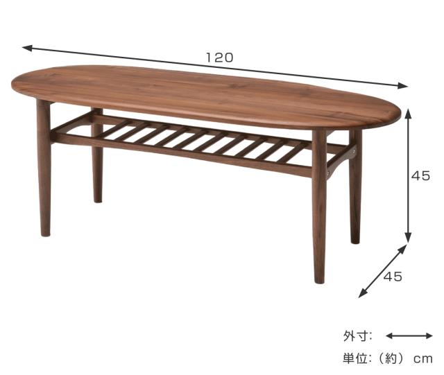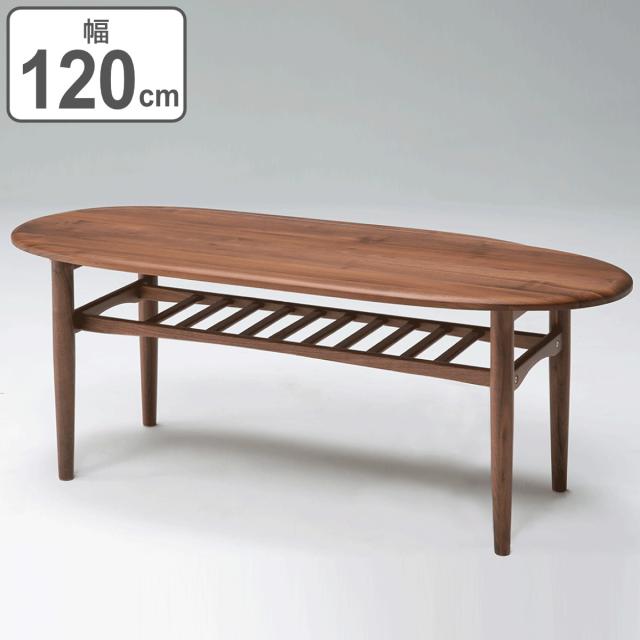 センターテーブル 幅120cm 木製 ラック 天然木 オーバル ( 開梱設置 無垢材 ウォールナット テーブル ローテーブル リビングテーブル 楕円 丸 おしゃれ 天板下収納 棚付き シンプル モダン 北欧 )