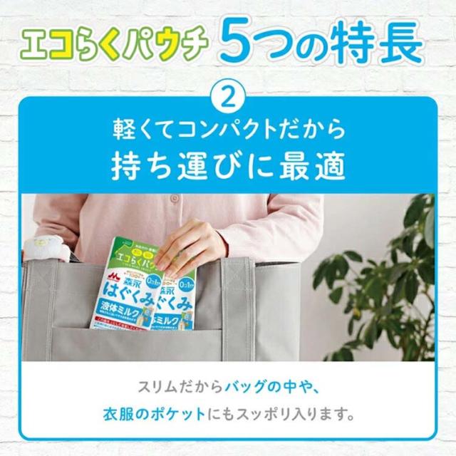 ●コンパクトなパウチ容器:調乳不要で持ち運びに便利。