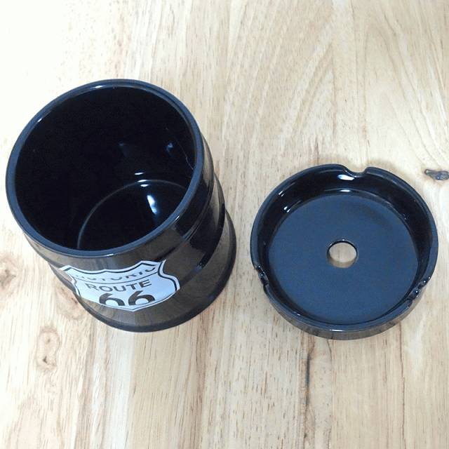 ドラム缶灰皿 喫煙具 Route66 タバコ ブラック 小物入れ アメリカン 雑貨 おしゃれ インテリア ペン立て かっこいい メンズ プレゼント ギフト