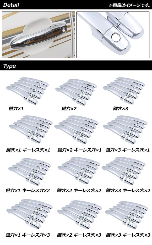 ドアハンドルカバー トヨタ ランドクルーザープラド 120系 鏡面シルバー ABS樹脂製 鍵穴×1 キーレス穴×3 入数:1セット(10個) AP-XT1389-T4-KSI