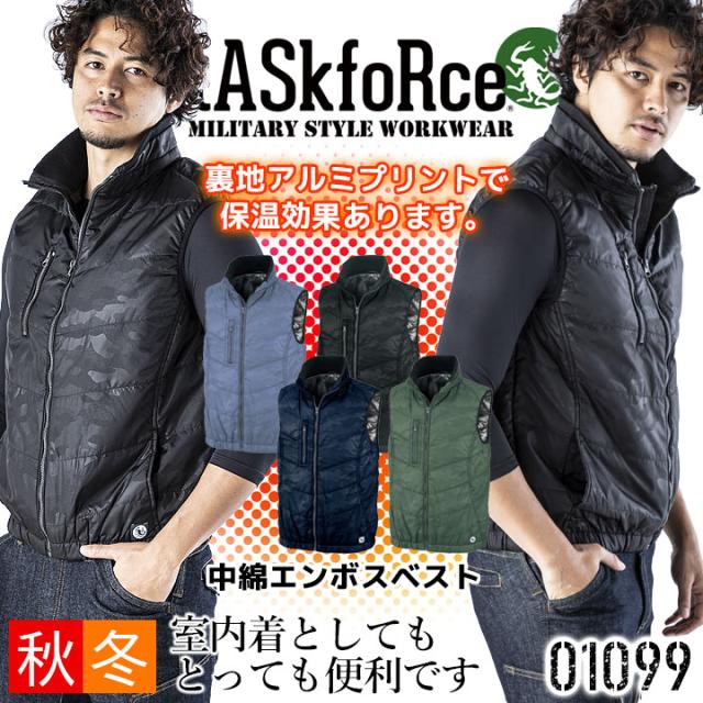 防寒着 防寒ベスト 中綿エンボス タスクフォース 保温 裏アルミプリント 01099 秋冬 アウター メンズ 防寒服 作業服 作業着 tASkfoRce 大川被服