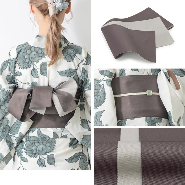 帯は、体に巻いて後ろで結ぶタイプの半幅帯です。
