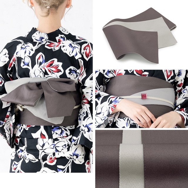 帯は、体に巻いて後ろで結ぶタイプの半幅帯です。