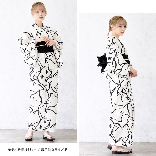 浴衣セット レディース 浴衣セット 兵児帯 大人 3点セット ホワイト 白系 ブラック 黒 帯 千鳥 夏 花火大会 モダン Sサイズ フリーサイズ
