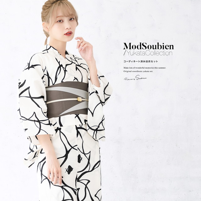 こちらの商品は、浴衣・帯・下駄の3点セットです。セット内容の一部変更や、それに伴う値引きは承っておりません。