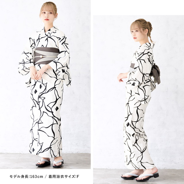 浴衣セット レディース 浴衣セット 半幅帯 大人 3点セット ホワイト 白系 ブラック 黒 グレー 帯 千鳥 夏 花火大会 モダン Sサイズ フリーサイズ