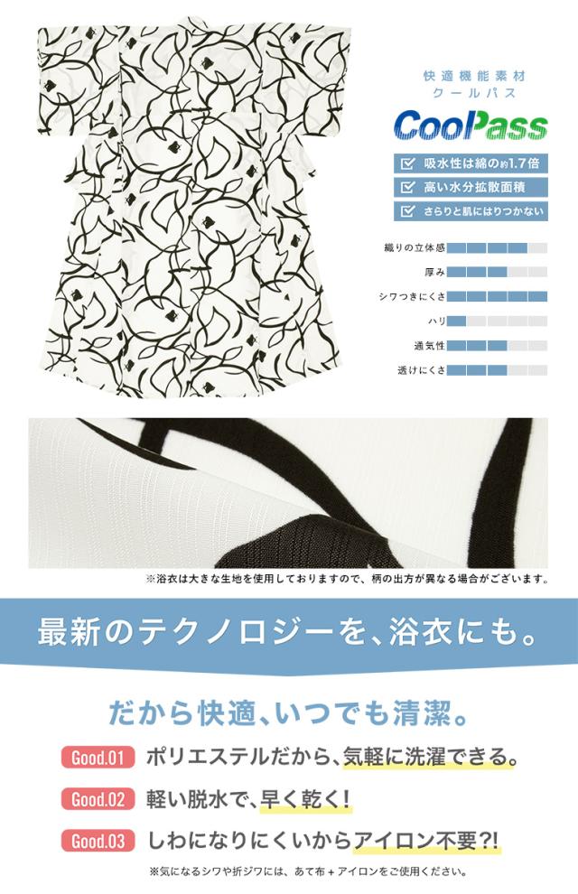 浴衣生地は、柔らかい肌触りとふわりとした質感のポリエステル100%です。