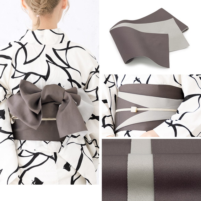 帯は、体に巻いて後ろで結ぶタイプの半幅帯です。