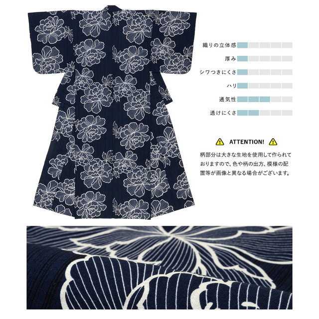 浴衣生地は、柔らかい肌触りとふわりとした質感のポリエステル100%です。