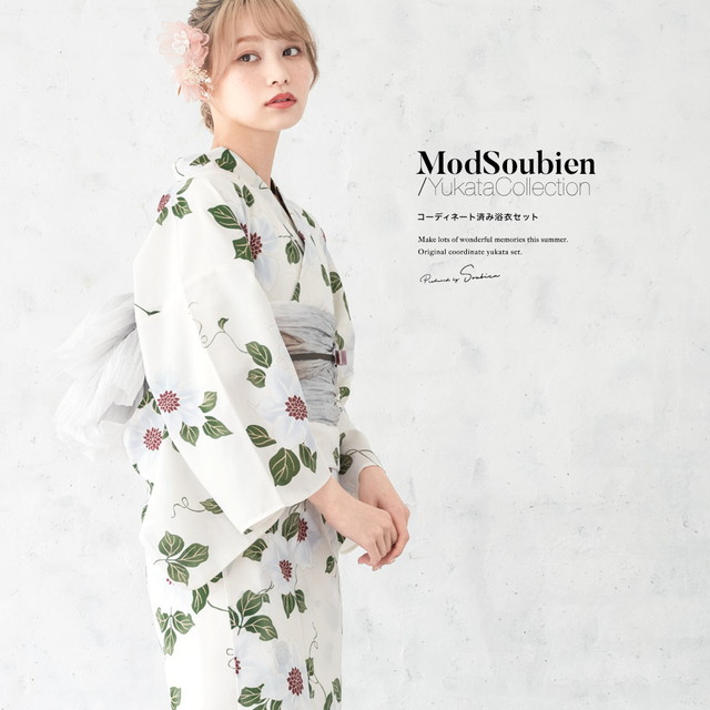こちらの商品は、浴衣・帯・下駄の3点セットです。セット内容の一部変更や、それに伴う値引きは承っておりません。