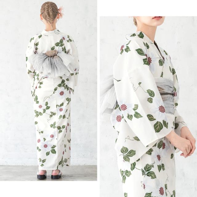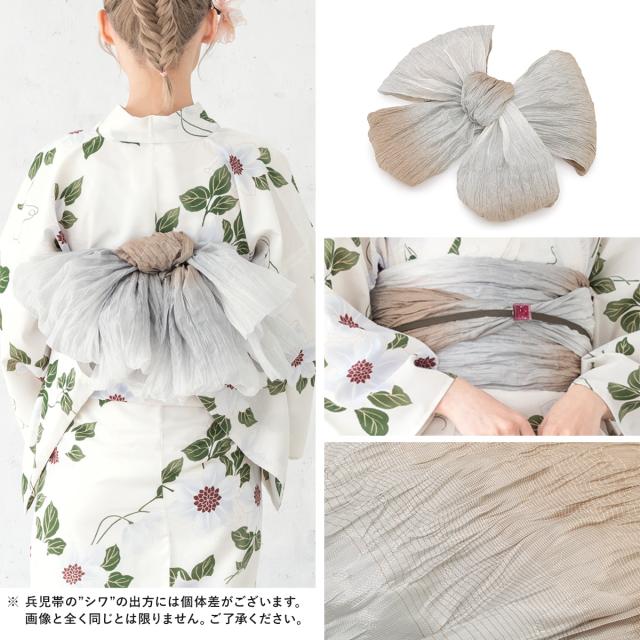 浴衣セット レディース 浴衣セット 兵児帯 大人 3点セット グレー 灰色 ホワイト 白 帯 花 夏 花火大会 モダン Sサイズ フリーサイズ