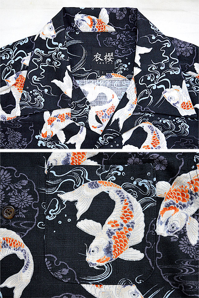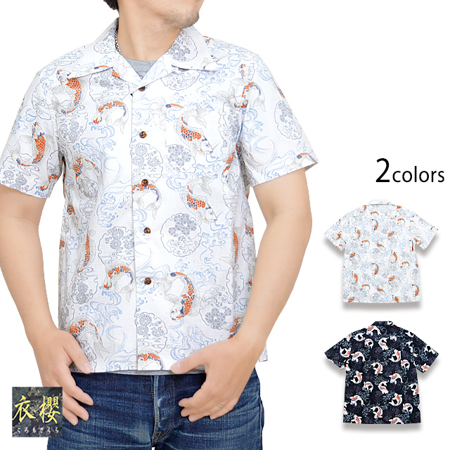 味わい深い物作りをされている衣櫻さんから、コットンアロハシャツ「跳ね鯉」(SA-1462)のご紹介です。